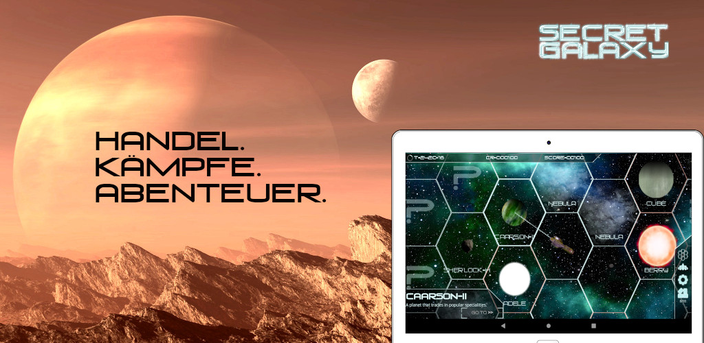 Besuche einzigartige Planeten, um Handel zu treiben oder Taxi-Passagiere zu finden. Auf manchen Planeten warten Abenteuer oder unerwartete Begegnungen ... und fast überall lässt sich mit geschickten Investitionen in exotische Waren eine schnelle Mark machen.ECRET GALAXY ist ein vielfältiges Echtzeit-Strategie-Spiel, das mit immer neuen Szenarios erweitert wird!
